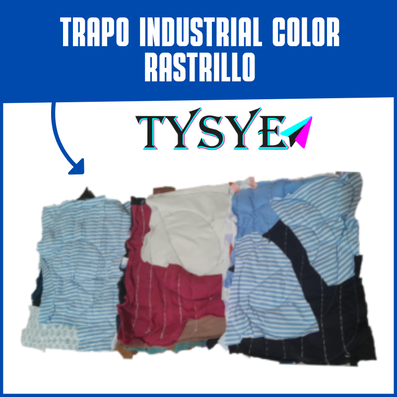 El Trapo Industrial Cosido Color RASTRILLO, es un producto Elaborado a partir de saldos de tejido de algodón de punto sin uso, son retazos unidos por una costura de 7 puntadas Rectangular. Con un reforzamiento Circular, medida 21cm por 26 cm, aproximadamente.100 % algodón.